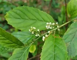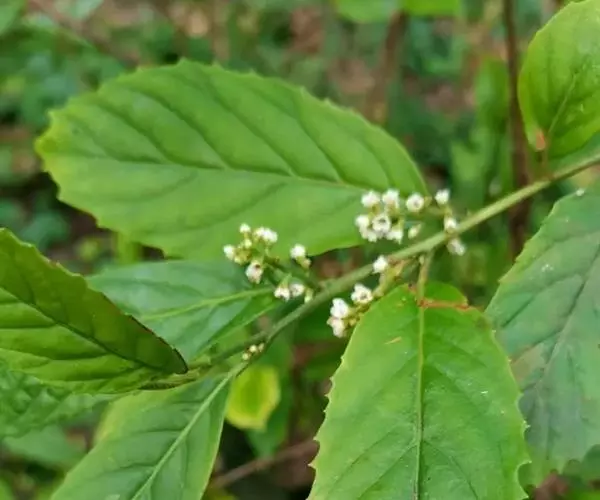 总状花序或圆锥花序,腋生,长2-4厘米,具2-3分枝(为圆锥花序时),被长硬毛和短柔毛;苞片小,披针形或钻形,较花梗短,花梗长约2毫米,小苞片披针形或近卵形,均被长硬毛和短柔毛;花长约2毫米,萼片广卵形,较萼管长或几等长,具脉状腺条纹,被长硬毛,以后无毛;花冠白色,钟形,长约为花萼的1倍,无毛,具脉状腺条纹;裂片与花冠管等长,广卵形,边缘具不整齐的微波状细齿;雄蕊在雌花中退化,在雄花中着生于花冠管上部,内藏;花丝较花药略长;花药广卵形或近肾形,无腺点;雌蕊较雄蕊略短,花柱短且厚,柱头4裂。