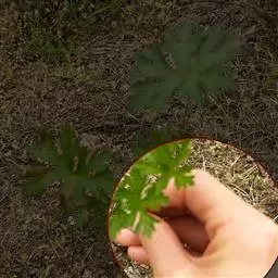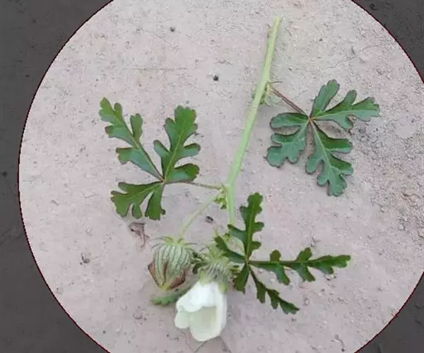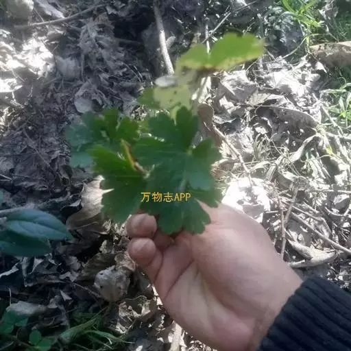 叶基生和茎生叶对生;托叶卵状三角形或上部为狭披针形,长5-8毫米,宽1-3毫米,基生叶和茎下部叶具长柄,柄长为叶片的2-3倍,被倒向短柔毛,茎上部叶柄渐短或近无柄;基生叶片圆肾形,长3-5厘米,宽4-9厘米,5深裂达2/3处,裂片倒卵状楔形,下部全缘,上部不规则状齿裂,茎生叶3裂至3/5处,裂片长卵形或宽楔形,上部齿状浅裂,先端长渐尖,表面被短伏毛,背面沿脉被短糙毛。