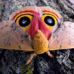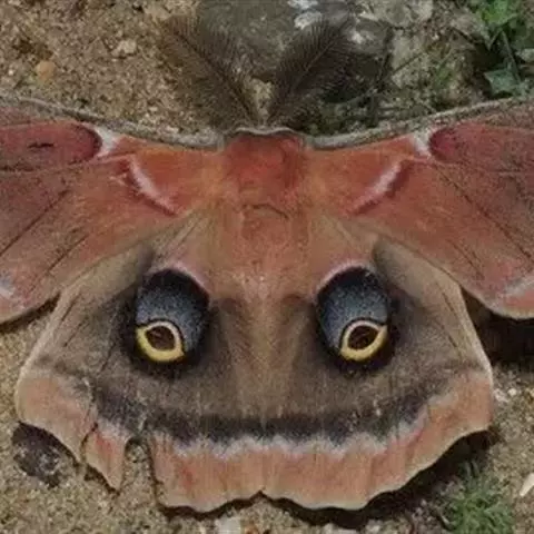 幼虫为深褐色或灰色,上面有白色和蓝色斑点组成的条纹。蛹是暗红色,头部圆钝。