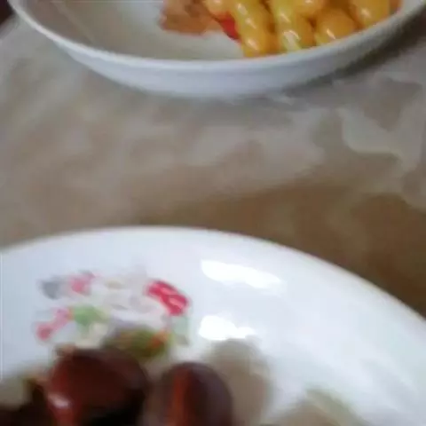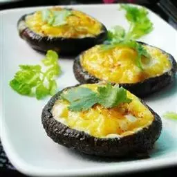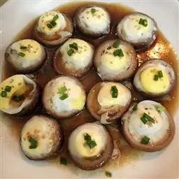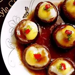 4.把鸡肉、蟹柳、冬菇排在兜中,倒入蛋汁,用慢火蒸4分钟,打开锅盖让蒸气散去,然后再盖上锅盖蒸,每蒸之或3分钟把锅盖打开1次,直到蒸熟,约蒸9分钟。这样蒸熟的蛋,面光滑又嫩。