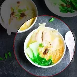 鸡肉75克,蟹柳1条,冬菇2只,鸡蛋2只,鲜奶(或鸡汤)1杯。