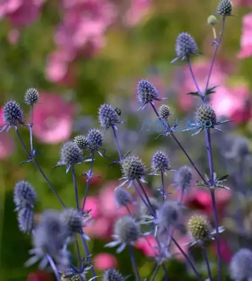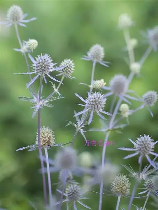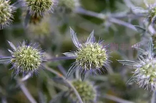 扁叶刺芹,伞形科 刺芹属 ,多年生草本。高约75cm,茎灰白色、淡紫灰色至深紫色坚硬光滑,上部分枝。基生叶长椭圆状卵形,边缘有粗锯齿。头状花序着生于每一分枝顶端,圆卵形、阔卵形或半球形;花浅蓝色,花瓣与萼片互生,膜质透明。果实长椭圆形,卵形或近圆形,花果期7-8月。扁叶刺芹是一种典型的干旱植物,即使是在恶劣环境里也充满活力,直立的茎叶,漂亮的蓝色花序,是一种很好的切花和干燥花。