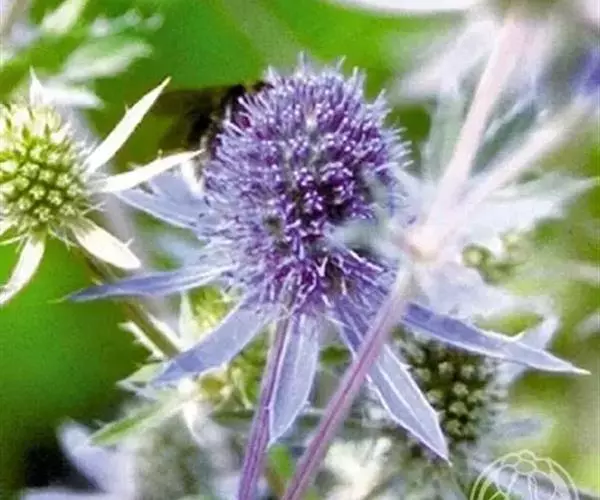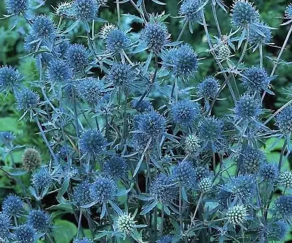 扁叶刺芹俗称海冬青或滨刺芹,从1800年开始在美国就已开始种植。扁叶刺芹是多年生草本,根生叶呈莲座状为深绿色,茎生叶蓝色,开亮蓝色花,喜光,喜疏松排水好的的土壤。耐干旱性很强,是一种典型抗旱植物。经过国内栽培引进实验,证明其具有半耐荫的特性。