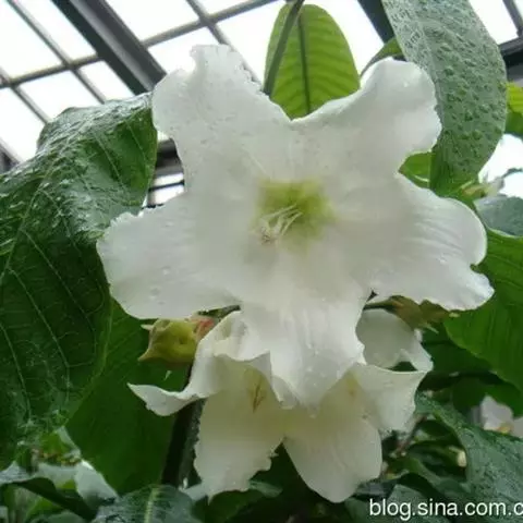 清明花,别名比蒙花、炮弹果、刹抢龙(云南少数民族名),拉丁学名为Beaumontia grandiflora Wall.。