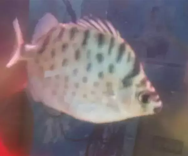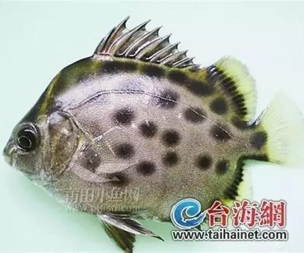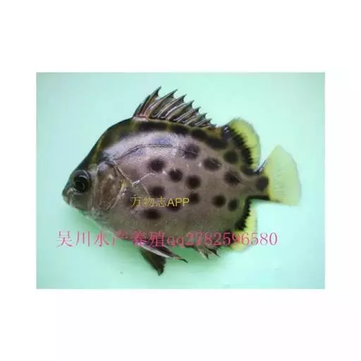 属于金钱鱼科。体略呈椭圆形,侧扁而高,背鳍硬棘与软条间具有深缺刻,体表呈褐色,腹缘银白色,鱼体上有许多深色圆斑。