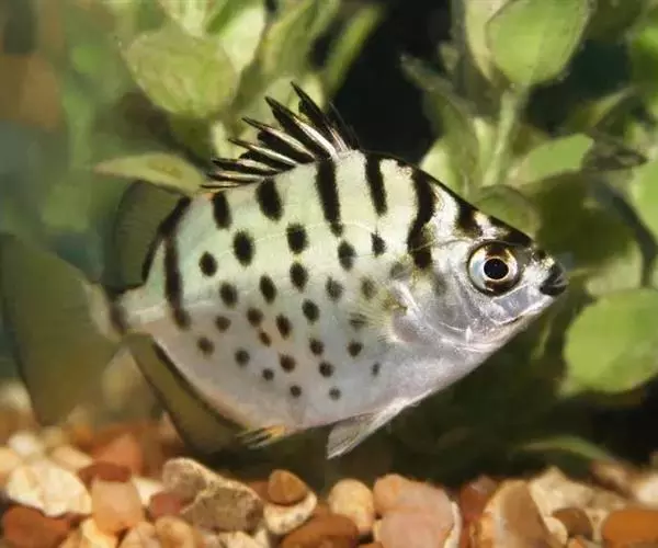 ②银鼓鱼(多纹钱蝶鱼,Selenotoca multifasciata):该种鱼的最大体长可达40厘米,体色青银白色,体侧有少量黑色小斑。
