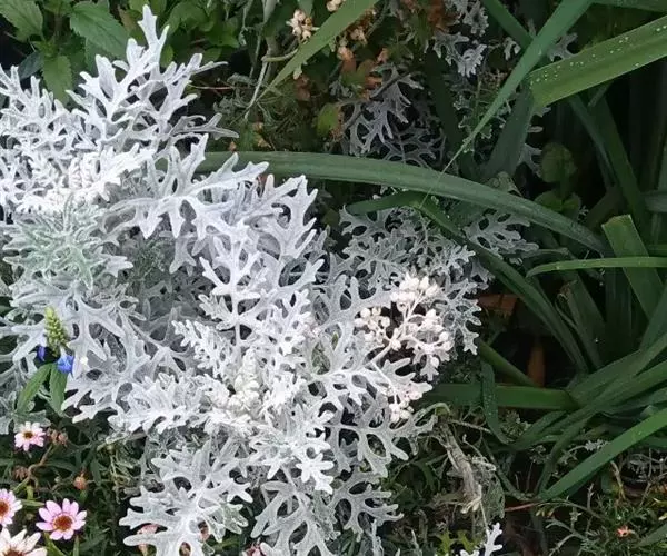 花坛花卉|草坪及地被观叶类 ,其银白色的叶片远看像一片白云,与其他色彩的纯色花卉配置栽植,效果极佳,是重要的花坛观叶植物。