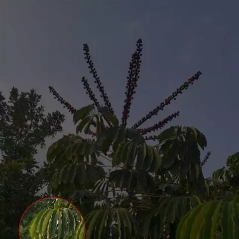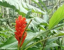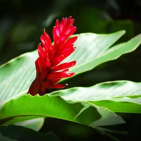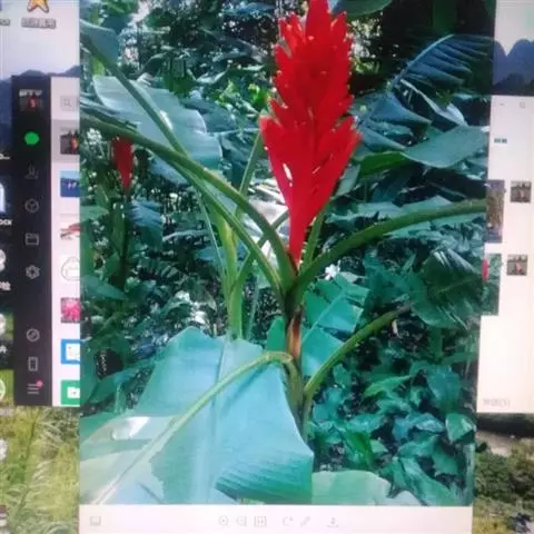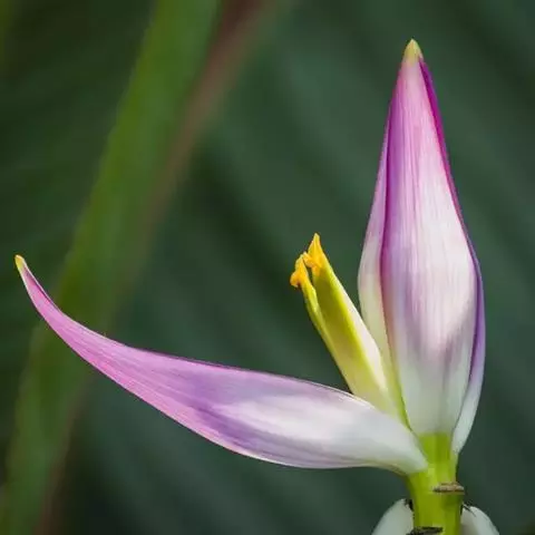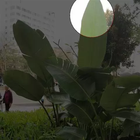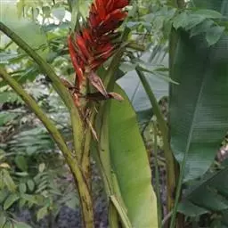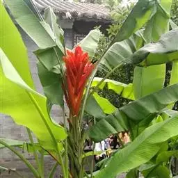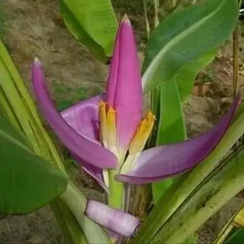 紫苞芭蕉形如一枝亭亭玉立、含苞待放的荷花,但却开在高高的芭蕉树上,这就是紫苞芭蕉。