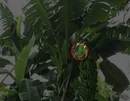 症状特点:全株性病害。叶片狭小,直立状,叶缘黄化,断断续续的深绿色条纹(俗称"起青筋")。本病因顶部叶片成束而得名。病株一般不抽花蕾,故又称"蕉公"。现蕾前后发病,如叶片已出齐,则不表现"束顶",叶片也不狭小、黄化,但幼嫩叶片主脉仍现"青筋",抽出的花蕾直牛,不结蕉或结蕉性能极差,果小而少,果端细如指头,果肉腕、无香味。