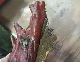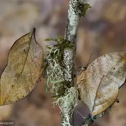 蛹暗褐色,各节有橙色的棘状突起,端部呈牛角状,样子像垂挂卷曲的枯叶。