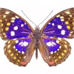 大紫蛱蝶为大型蝶种,翅展约86~110mm。翅紫黑色,有白色斑点点缀其中,雄蝶的翅具强烈紫色虹彩,…