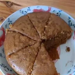 7.烤盘内加水放入烤箱提前180度预热烤箱,烤箱温度165度烤熟,约40~50分钟即可(蛋糕模放入加水的烤盘,隔水烤制)