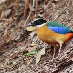 蓝翅八色鸫是雀形目八色鸫科的鸟类。体长17-20厘米,体重类约48-70克,体型圆胖,尾短,腿长,…
