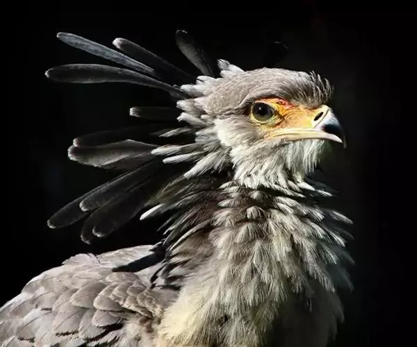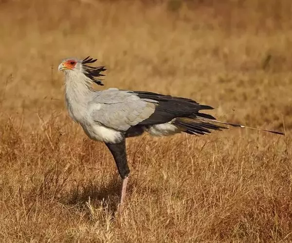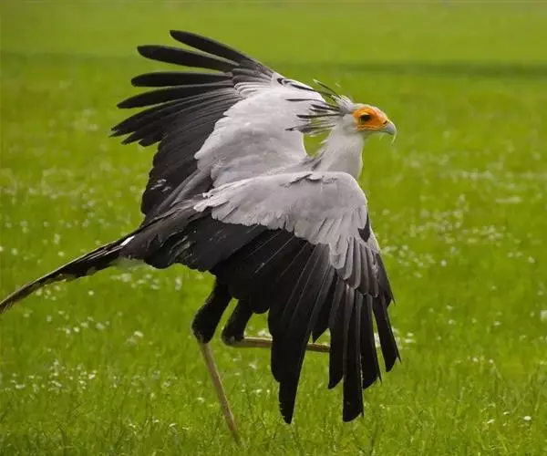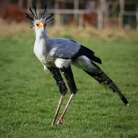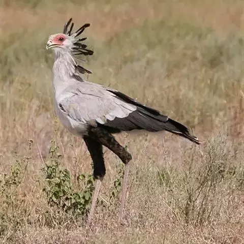 蛇鹫又名秘书鸟,如此命名是因为它头上有20根黑色冠羽,貌似之前耳后带着羽笔的文书。虽然它可以飞,但是更喜欢步行走动,活动范围可以覆盖30公里,以寻找食物和其他资源。蛇鹫主要食物是大型昆虫和小型哺乳动物,喜将猎物摔死后整个吞下。