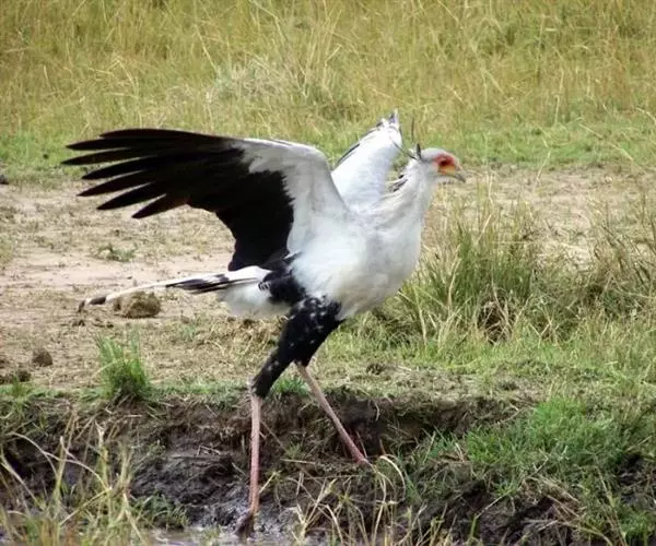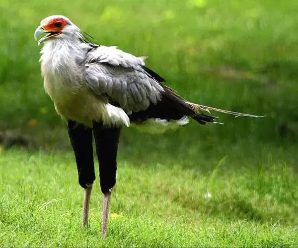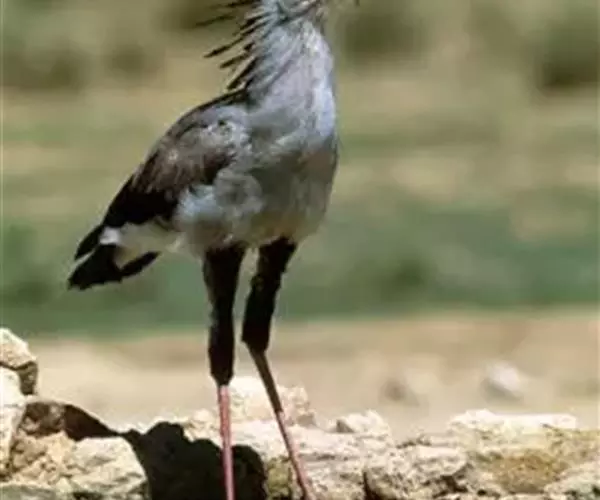 蛇鹫的腿像鹤腿一样修长挺拔,上半部长着黑色的短绒毛,看起来好像穿着一条马裤。小腿和脚表面长有很厚的角质鳞片,使其行走于灌丛时或捕蛇时脚部不致受到伤害。平常,蛇鹫就是如此迈着自己纤巧的长腿优雅地在非洲草原上走来走去——文雅的风度和独特的模样在猛禽家庭中独树一帜,使人很难想象它们捕猎时的凶猛。