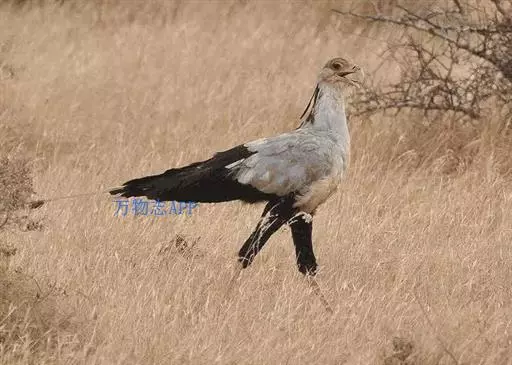 蛇鹫[shé, jiù],学名:Sagittarius serpentarius (J. F. Miller),为隼形目蛇鹫属下的一种大型陆栖猛禽,仅有一种,无亚种分化。体型似鹤,体长为1.25-1.5米,体高1.2-1.5米,体重2.3-4.27千克,在猛禽中可谓“鹤立鸡群”。体羽浅灰色,大腿黑色,飞羽黑色,有白色羽纹。尾有一对长的中央饰羽。腿长并有厚鳞保护,以免被蛇咬伤。蛇鹫是许多非洲毒蛇(如黑曼巴蛇)的天敌。
