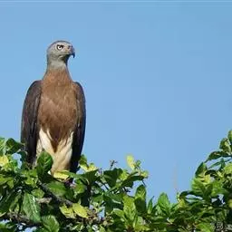 栗翅鹰:是鹰科、鵟属的中型猛禽,体长46-76厘米。全身棕色羽毛,翅膀的上下是栗子色,大腿稍带黑棕色。…