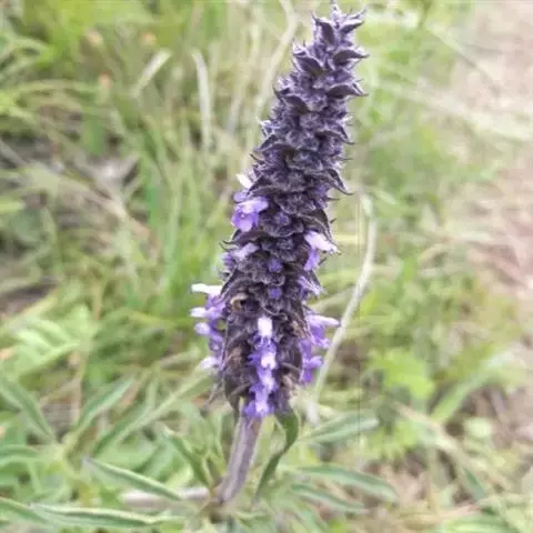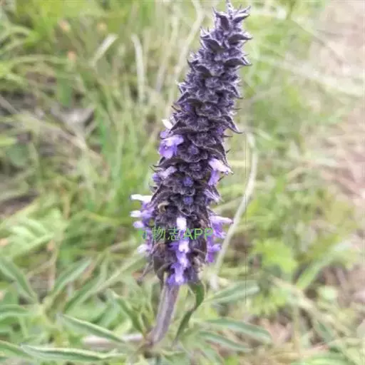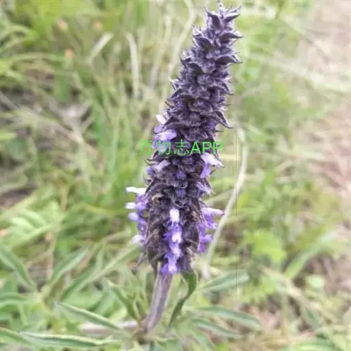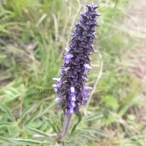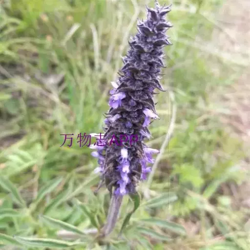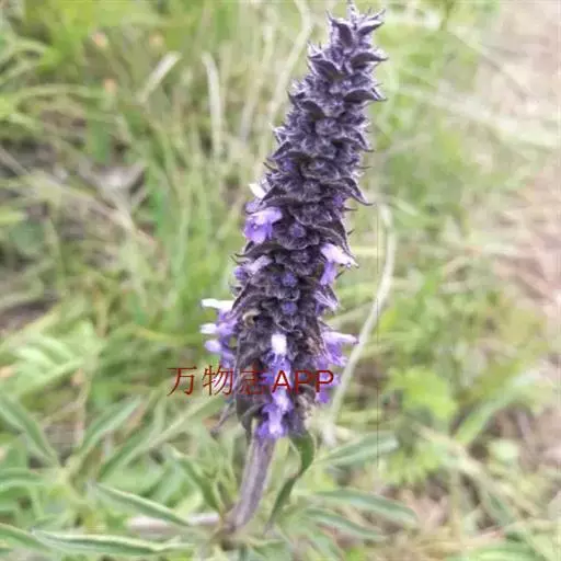 花序为多数轮伞花序组成的顶生穗状花序,长2-13厘米,通常生于主茎上的较长大而多花,生于侧枝上的较小而疏花,但均为间断的;苞片叶状,下部的较大,与叶同形,上部的渐变小,乃至与花等长,小苞片线形,极小。花萼管状钟形,长约3毫米,径1.2毫米,被灰色疏柔毛,具15脉,齿5,三角状披针形或披针形,先端渐尖,长约0.7毫米,后面的较前面的为长。花冠青紫色,长约4.5毫米,外被疏柔毛,内面无毛,冠筒向上扩展,冠檐二唇形,上唇先端2浅裂,下唇3裂,中裂片最大。雄蕊4,后对较长,均内藏,花药蓝色。花柱先端近相等2裂。小坚果长圆状三棱形,长约1.5毫米,径约0.7毫米,褐色,有小点。花期7-9月,果期在9月以后。