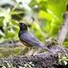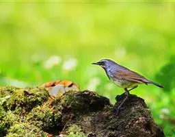栗腹歌鸲是鹟科、歌鸲属小型鸟类,体长12-14厘米。雄鸟前额和头侧黑色,…