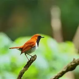 赭红尾鸲:小型鸟类,体长13-16厘米。雄鸟前额、头侧、颈侧、颏至胸概黑色,头顶和背灰色或黑色,…
