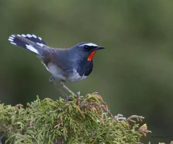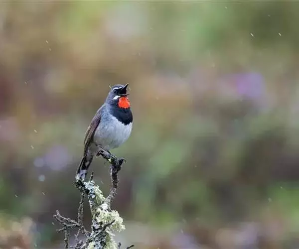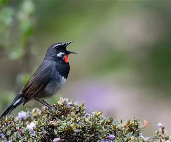叫声:繁殖期间善于呜叫,雄鸟常站在灌丛顶端或岩石上鸣唱,声音为4-5个音节的一连串哨音,极为婉转、悦耳,且富有颤音,有时夜间也鸣唱。 白日里长久地重复亮而尖的动人鸣声。鸣叫时头朝后甩,喉部挺出,两翼低垂,尾半上翘呈扇形且轻弹。叫声包括粗涩的金属样音,近巢区时有粗哑的“it-it”音,告警时为拖长的“siiii-siiii”音。