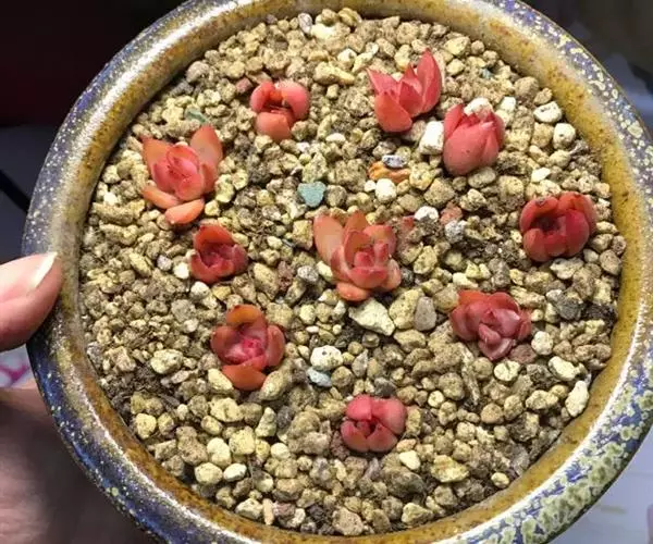在生长期间用掰取成熟而完整的叶片进行扦插,插前晾1~2天,稍倾斜或平放于蛭石或沙土上, 保持稍有潮气, 很快就会在基部生根, 并长出新芽, 等新芽长得稍大些, 另行栽种即成为新的植株; 还可用老株旁边萌发的幼株扦插,也容易成活。