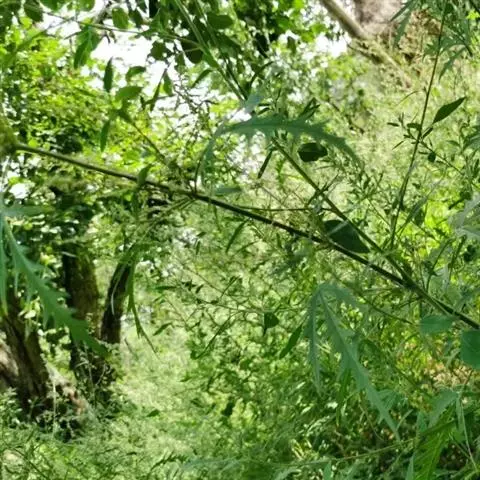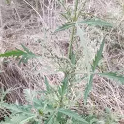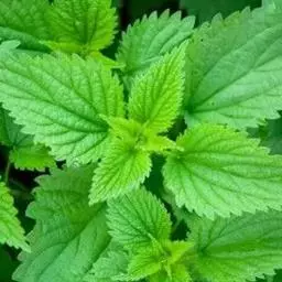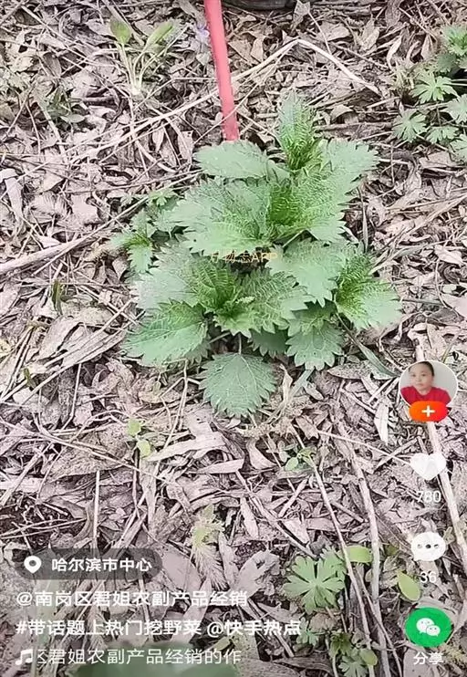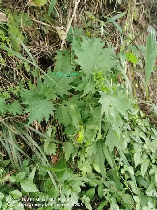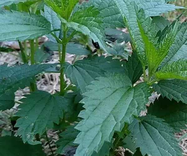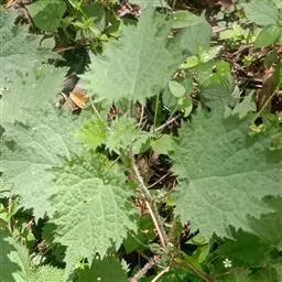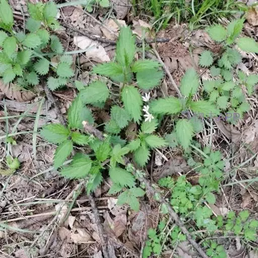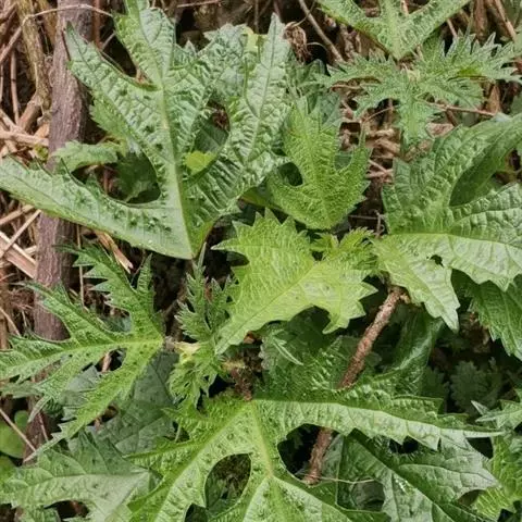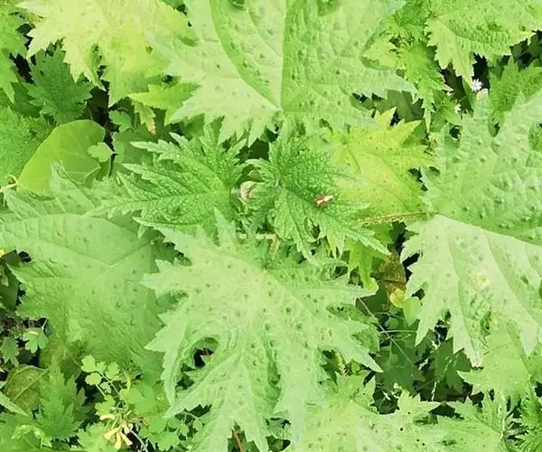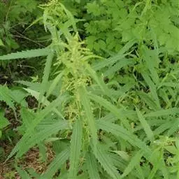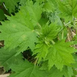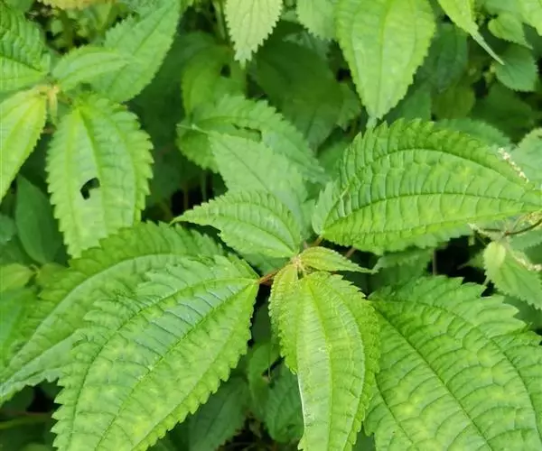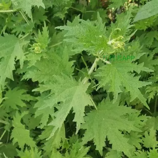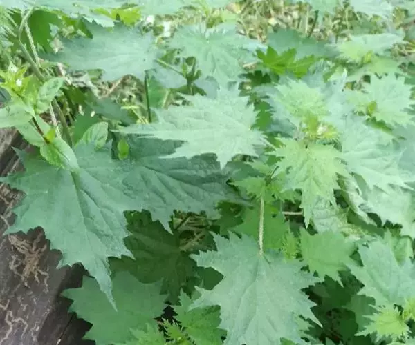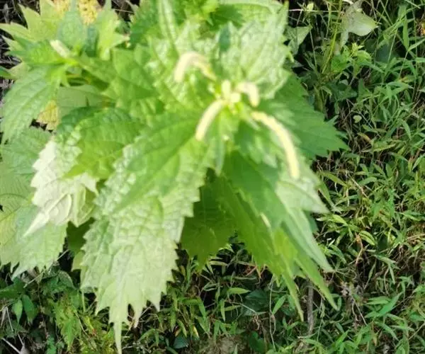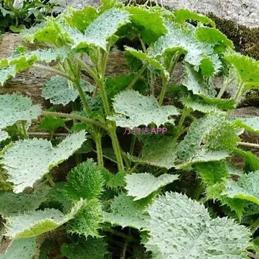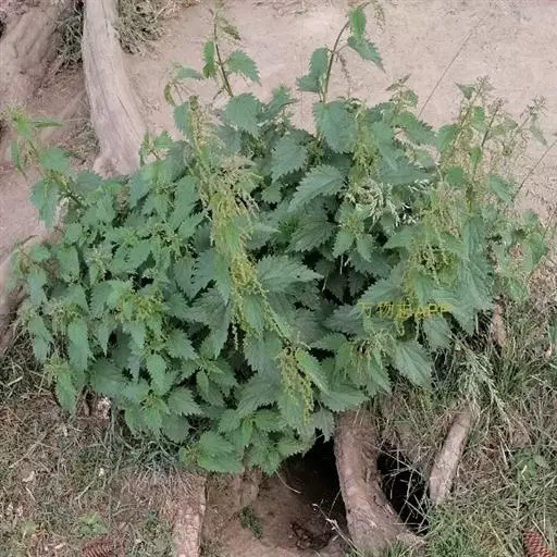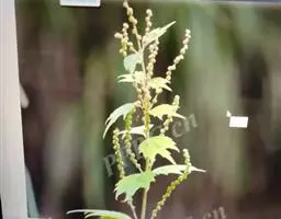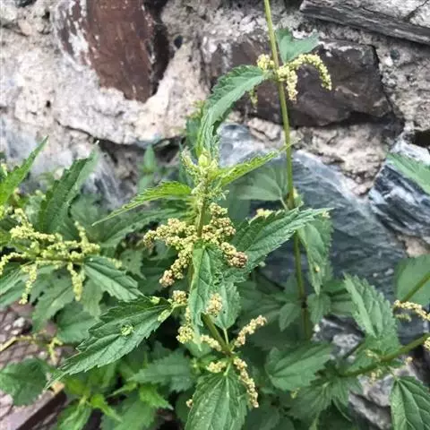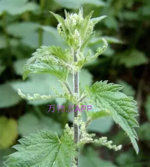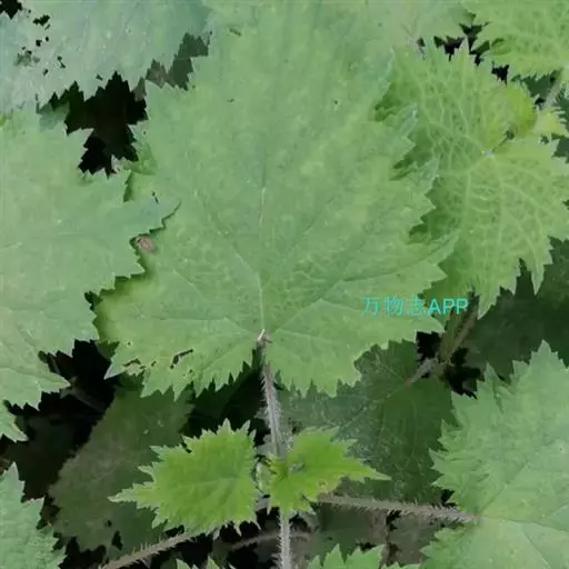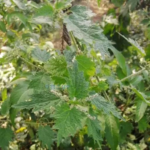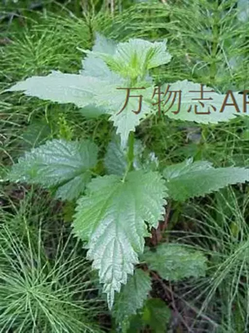 荨麻(学名:Urtica fissa E. Pritz.):多年生草本植物,高可达100厘米,四棱形,分枝少。叶片近膜质,宽卵形、椭圆形、五角形或近圆形轮廓,裂片自下向上逐渐增大,三角形或长圆形,上面绿色或深绿色,下面浅绿色,叶柄密生刺毛和微柔毛;托叶草质,绿色,雌雄同株,花序圆锥状,雄花具短梗,花被片在中下部合生,雌花小,几乎无梗;瘦果近圆形,表面有带褐红色的细疣点;8-10月开花,9-11月结果。