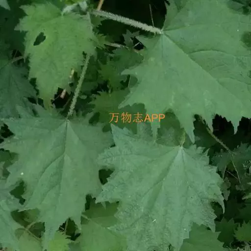 叶近膜质,宽卵形、椭圆形、五角形或近圆形轮廓,长5-15厘米,宽3-14厘米,先端渐尖或锐尖,基部截形或心形,边缘有5-7对浅裂片或掌状3深裂(此时每裂片又分出2-4对不整齐的小裂片),裂片自下向上逐渐增大,三角形或长圆形,长1-5厘米,先端锐尖或尾状,边缘有数枚不整齐的牙齿状锯齿,上面绿色或深绿色,疏生刺毛和糙伏毛,下面浅绿色,被稍密的短柔毛,在脉上生较密的短柔毛和刺毛,钟乳体杆状、稀近点状,基出脉5条,上面一对伸达中上部裂齿尖,侧脉3-6对;叶柄长2-8厘米,密生刺毛和微柔毛;托叶草质,绿色,2枚在叶柄间合生,宽矩圆状卵形至矩圆形,长10-20毫米,先端钝圆,被微柔毛和钟乳体,有纵肋10-12条。