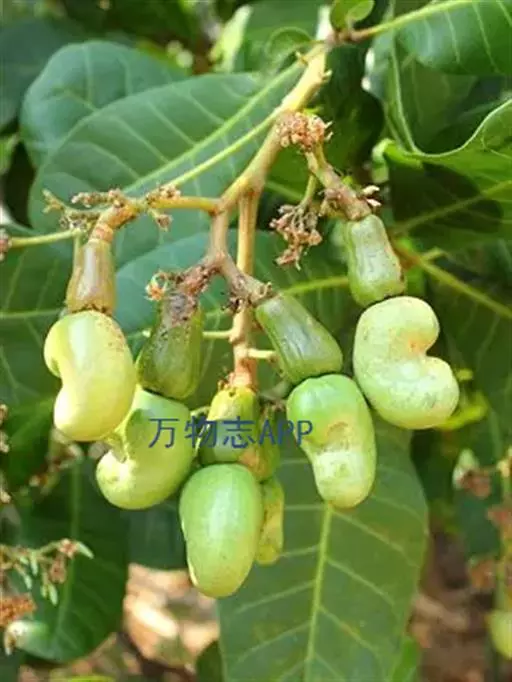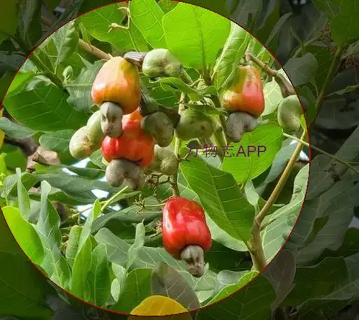 腰果,Anacardium occidentalie Linn,是双子叶植物纲、无患子目、漆树科、腰果属的一种植物。又名槚如树、鸡腰果、介寿果。常绿乔木,树干直立,高达10米。腰果是一种肾形坚果,无患子目漆树科腰果属。原产于美洲。