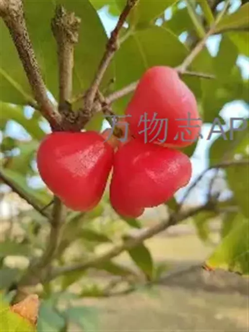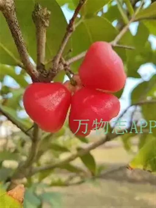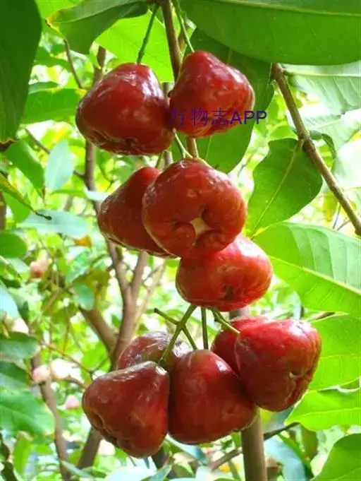 假果是由花托形成的肉质果,又称“梨果”,是由花托形成的肉质果,有陀螺形、扁菱形和卵圆形,有鲜红色、橙色和黄绿杂色。果肉脆嫩多汁,含水分87.8%,碳水化合物11.6%,蛋白质0.2%,脂肪0.1%,还含有多种维生素和钙、磷、铁等矿物元素,具有有利水、除湿、消肿之功,可防治肠胃病、慢性痢疾等。