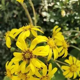 金玉菊又名白金菊,原产非洲南部,为菊科千里光属多年生常绿草本植物。植株匍匐或攀援向上生长,茎圆,红…