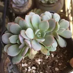 蓝石莲是景天科、拟石莲花属的多肉植物。茎部粗壮,成熟植株茎部木质化。叶片莲座型密集排列,株径不会很大,…