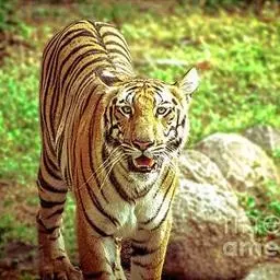 孟加拉虎是肉食目猫科豹属哺乳动物,又名印支虎。头圆、耳短、额阔,额部有数条黑色横纹,…