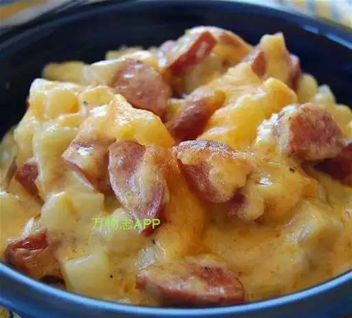 (2)土豆去皮切角块,用油炸至色泽金黄时盛起;烧热油1大匙,将洋葱炒香后盛起备用。
