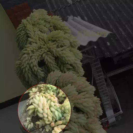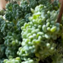 玉缀,别名翡翠景天(Sedum morganianum)景天科景天属(佛甲草属)常绿或半常绿多肉植物。植物匍匐下垂,翠绿色。叶小,多汁,纺锤形,、密密麻麻,似松鼠尾巴。花小,深玫瑰色,春季开放。