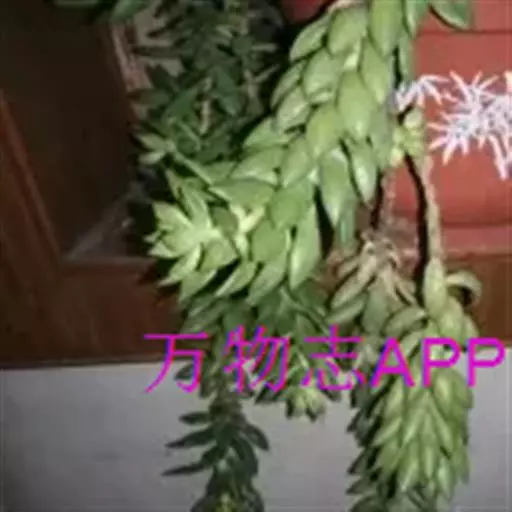 玉缀茎匍匐生长,故常悬挂栽培任其下垂。叶片披针形弯曲如香蕉,叶端尖,长度约2cm,叶色青绿带有透明感,叶表裹着一层粉,看起来非常粉嫩。花梗从枝端的叶腋凑出,通常会从不同叶腋抽生出几个花梗,一个花梗一朵花,花朵钟形桃红色,玲珑精致。