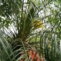 酒椰,茎直立,中等乔木状,高达5-10米。叶为羽状全裂,全长12-13米;羽片线形,长1.2-2米…