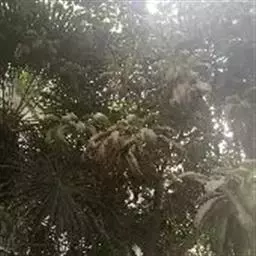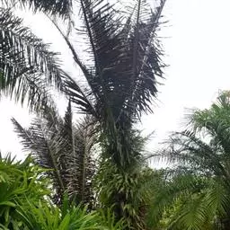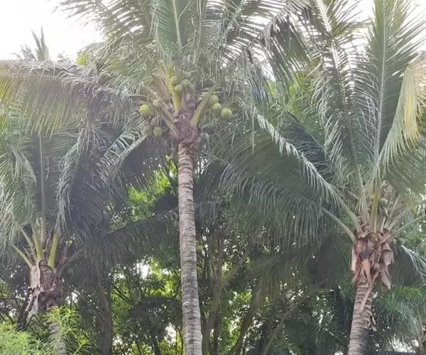 ⑶施肥:椰子树需施全肥,以钾肥最多,其次为氮、磷和氯肥,但必须注意平衡施肥。椰树缺钾时,茎干细,叶短小,树冠中部叶片首先萎蔫,上部叶片向下簇伸,低部叶片干枯、下垂悬挂于树干;缺氮时,幼叶失绿、少光泽,老叶出现不同程度的黄化,结果量减少,椰肉干产量降低;缺磷会引起根系发展不良和果腐;缺氯会影响椰果大小、椰肉干产量以及氮的吸收和植株对水分的利用。因此,施肥时要以有机肥为主,化肥为辅,并施一些食盐。每年可在4-5月及11-12月施肥,在距离树基部1.5-2米处开施肥沟,效果较好。若用撒施法,应全面除草松土后再施肥。