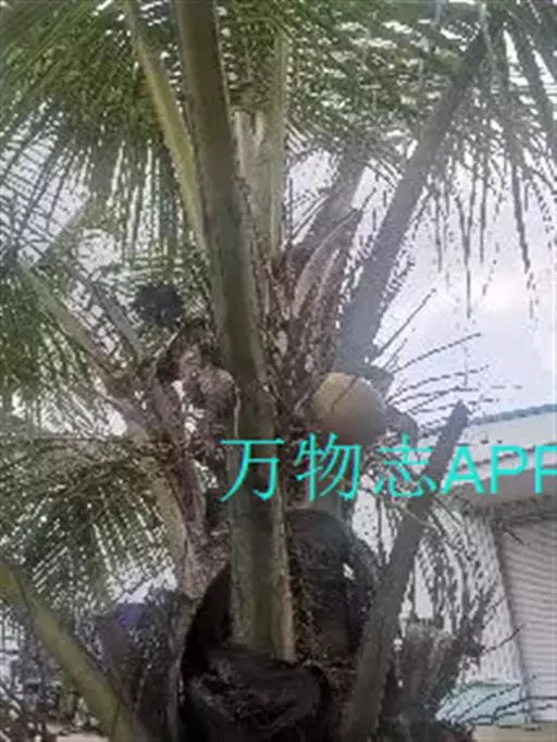 椰子(学名:Cocos nucifera L. )棕榈科椰子属植物,植株高大,乔木状,高15-30米,茎粗壮,有环状叶痕,基部增粗,常有簇生小根。叶柄粗壮,花序腋生,果卵球状或近球形,果腔含有胚乳(即“果肉”或种仁),胚和汁液(椰子水),花果期主要在秋季。
