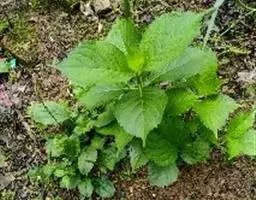 二年生草本,被粉霜。茎粗壮,直立,高0.5-1米,茎的全部叶腋有大的柔软叶芽,直径2-3厘米。二年生茎有分枝,具茎生叶。基生叶及下部茎生叶长圆状倒卵形至圆形,长和宽达30厘米。顶端圆形,基部骤窄成极短有宽翅的叶柄,边缘有波状不显明锯齿;上部茎生叶卵形或长圆状卵形,长8-13.5厘米,宽3.5-7厘米,基部抱茎;最上部叶长圆形,长约4.5厘米,宽约1厘米,抱茎。