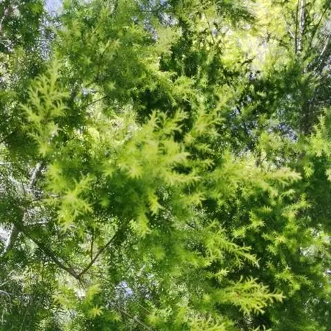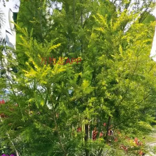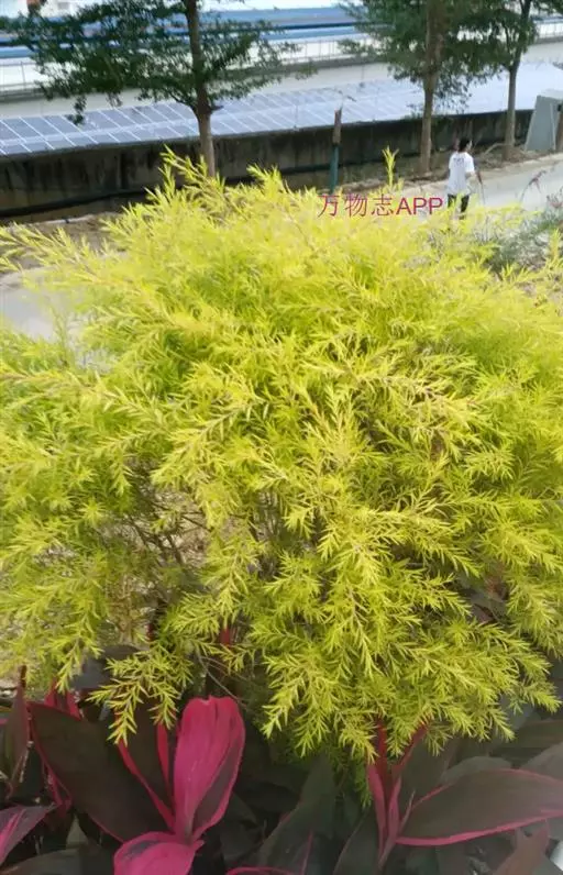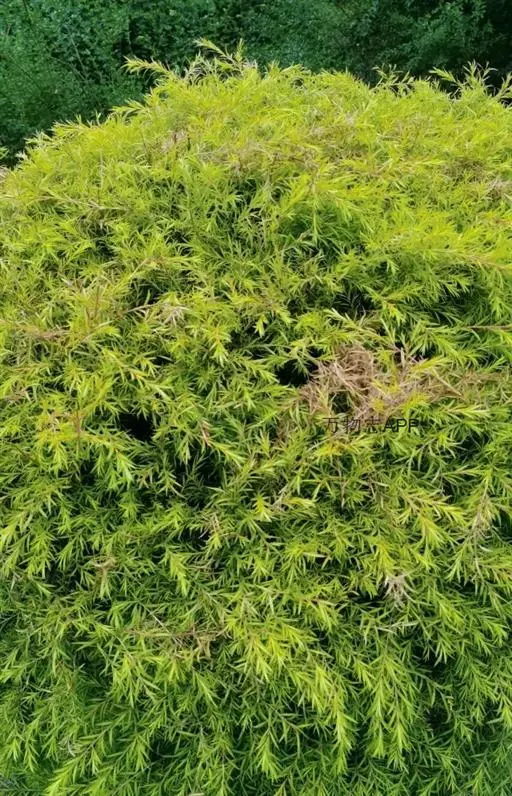 常绿灌木或小乔木,株高2~5米。叶互生,叶细小,披针形或狭线形,密集分布,金黄色或鹅黄色,夏至秋季开花,花乳白色,但以观叶为主,树冠金黄柔美,风格独具。