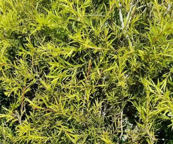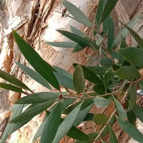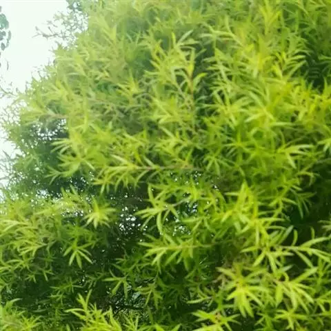 黄金串钱柳为桃金娘科白千层属常绿乔木,在广州,叶片秋、冬、春三季表现为金黄色,夏季由于温度较高为鹅黄色。1999年由新西兰首次引入我国。深根性树种,主干直立,枝条细长柔软,嫩枝红色,且韧性很强。抗风力强,在海边长势非常好。不仅可用于庭园案观、道路美化(用于行车道隔离带、人行道隔离带的造型小乔禾或行道树)、小区绿化,还可用于林相改造;同时,由于其抗盐碱、耐强风的特性,非常适于海滨及人工填海造地的绿化造莆、防风固沙等叶片芳香宜人,其含的芳香油是目前世界上珍贵的化妆品香料之一。