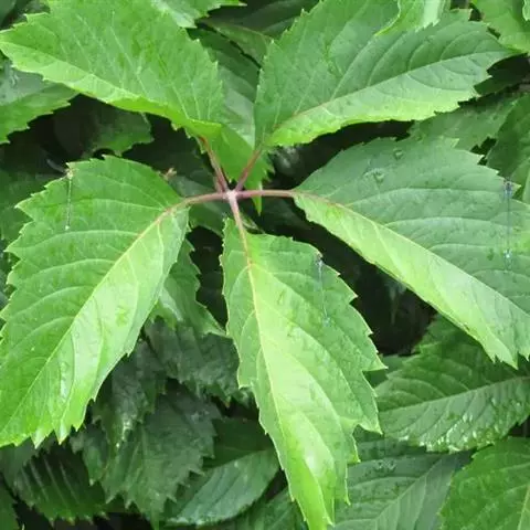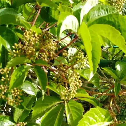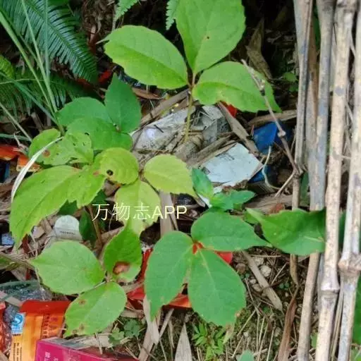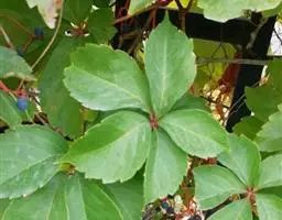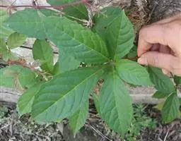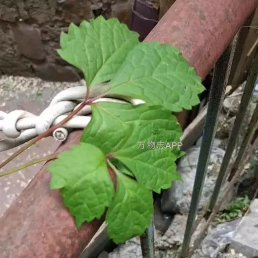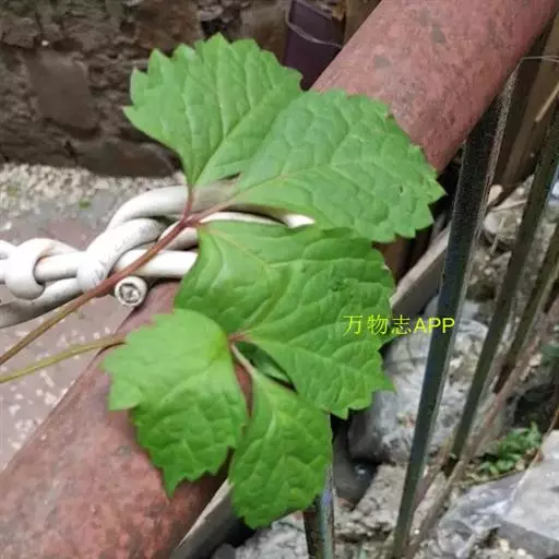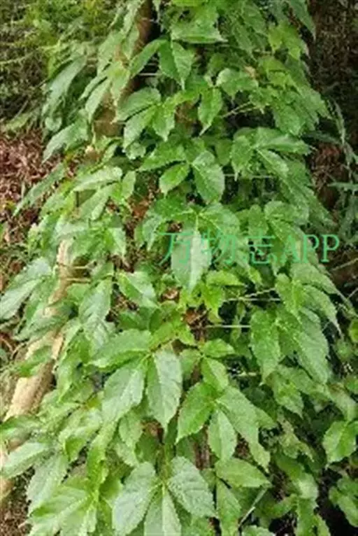 木质藤本。小枝圆柱形,嫩时被疏柔毛,以后脱落几无毛。卷须总状4-6分枝,相隔2节间断与叶对生,顶端嫩时尖细卷曲,后遇附着物扩大成吸盘。叶为3小叶,着生在短枝上,中央小叶倒卵椭圆形或倒卵圆形,长6-13厘米,宽3-6.5厘米,顶端骤尾尖,基部楔形,最宽处在上部,边缘中部以上每侧有6-11个锯齿,侧生小叶卵椭圆形或长椭圆形,长5-10厘米,宽(2) 3-5厘米,顶端短尾尖,基部不对称,近圆形,外侧边缘有7-15个锯齿,内侧边缘上半部有4-6个锯齿,上面绿色,下面浅绿色,下面中脉和侧脉上被短柔毛;侧脉4-7对,网脉两面不明显或微突出;叶柄长3.5-15厘米,疏生短柔毛,小叶几无柄。多歧聚伞花序着生在短枝上,花序基部分枝,主轴不明显;花序梗长1.5-3.5厘米,无毛或被疏柔毛;花梗长2-3毫米,无毛;花蕾椭圆形,高2-3毫米,顶端圆形;萼碟形,边缘全缘,无毛;花瓣5,卵椭圆形,高1.8-2.8毫米,无毛;雄蕊5,花丝长0.6-0.9毫米,花药卵椭圆形,长0.4-0.6毫米;花盘不明显;子房扁球形,花柱短,柱头不扩大。果实近球形,直径0.6-0.8厘米,有种子1-2颗;种子倒卵形,顶端圆形,基部急尖成短喙,种脐在背面中部呈圆形,腹部中棱脊突出,两侧洼穴呈沟状,从基部向上斜展达种子顶端。花期5-7月,果期9-10月。 [1-3]