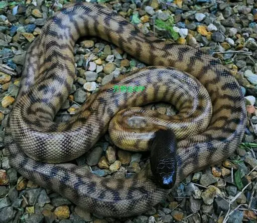 体长常见的3-5米。头颈部背面有一暗棕色矛形斑,头侧 蟒蛇 有一条黑色纵斑从鼻孔开始,经眼前鳞、眼斜向口角。眼下亦有一黑纹向后斜向唇缘,下唇鳞略有黑褐斑,头部腹面黄白色,体背棕褐色、灰褐色或黄色,体背及两侧均有大块镶黑边云豹状斑纹,体腹黄白色。