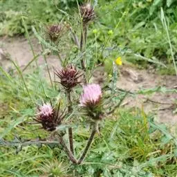 魁蓟菊科蓟属植物,多年生草本,高达1米,茎枝被长毛,基部和下部茎生叶长椭圆形或倒披针状长椭圆形,…