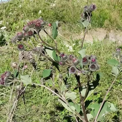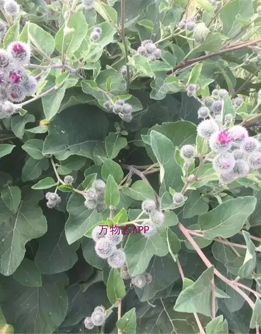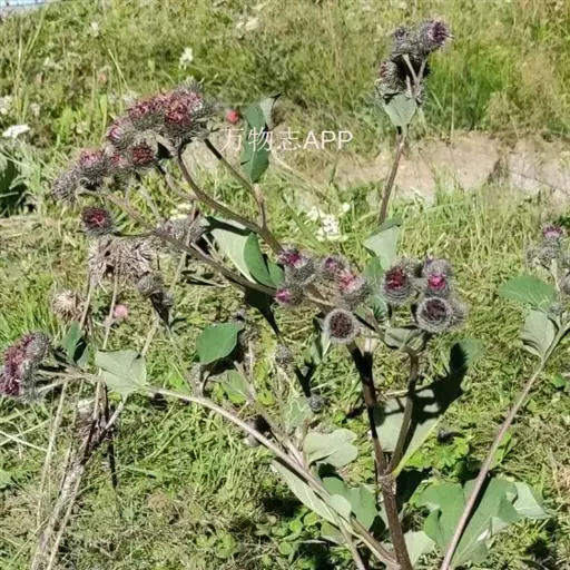 毛头牛蒡(学名:Arctium tomentosum Mill.)是二年生草本植物,有粗状的根;叶互生,心形,具长柄,背面被白色绵毛;头状花序多数,在茎枝顶端排成大型伞房花序或头状花序少数,排成总状或圆锥状伞房花序,两性,紫红色;总苞卵形或卵球形;苞片先端有钩刺;花序托有刺毛;瘦果浅褐色,倒长卵形或偏斜倒长卵形,光滑无毛;冠毛短,丰富,有锯齿,脱落。花果期7-9月。生于山坡草地。中国、中亚、欧洲等地有分布。瘦果和根宜做药用,功能同牛蒡。