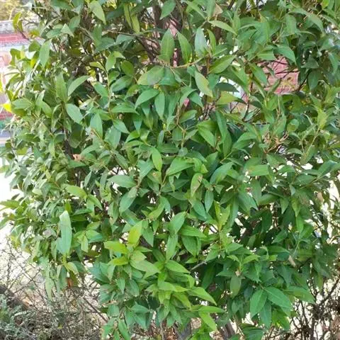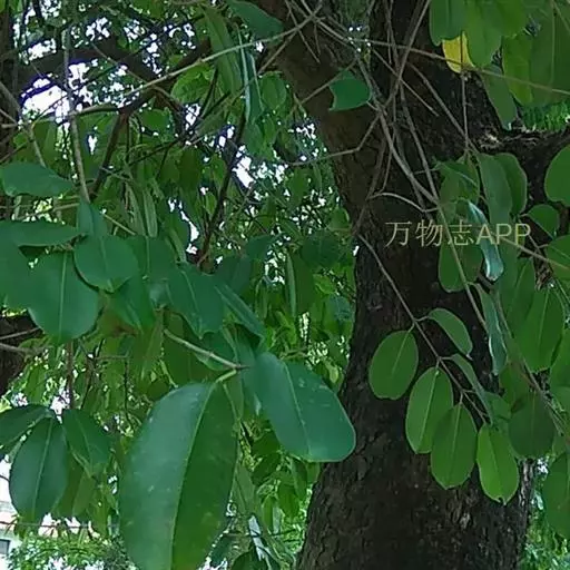 叶对生,革质,椭圆形至长椭圆形,长6-14cm。宽3-7cm,先端钝或短尖头,基部浑圆或阔楔形,深绿色且有光泽,具透明小腺点,揉之有香气,侧脉近平行斜出于叶缘连成边脉;叶柄长约2cm。
