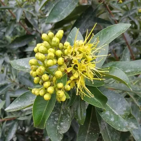 核果状浆果,椭圆或卵圆形,直径1-1.5cm,熟时由紫红色变紫黑色,具光泽,果皮多汁如墨。种子1粒,紫棕色,状似落花生种子。花期3-5月;果熟期7-8月。