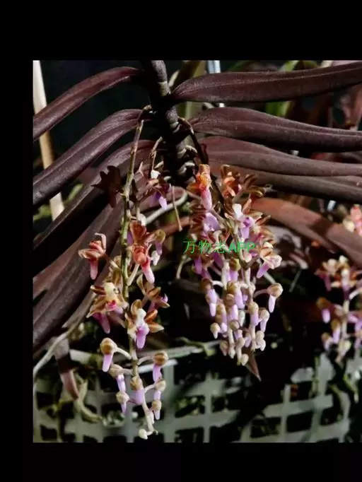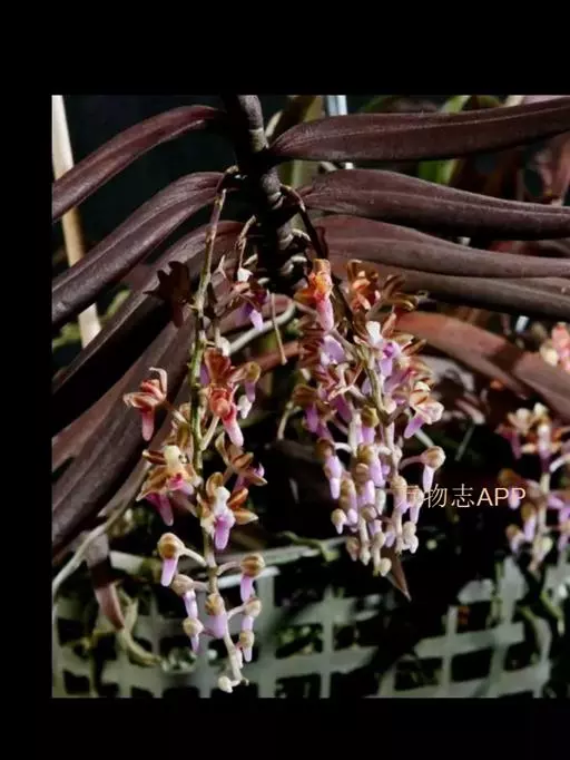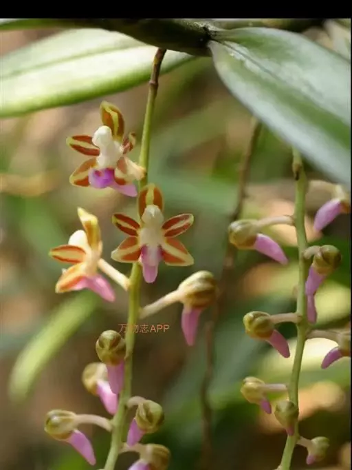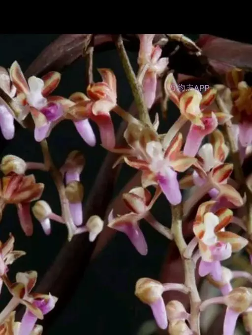 红花隔距兰 Garay):植株通常悬垂。茎细圆柱形,长达70厘米,粗3-4毫米,分枝或不分枝,…