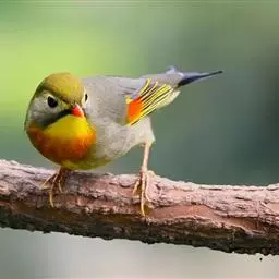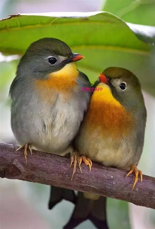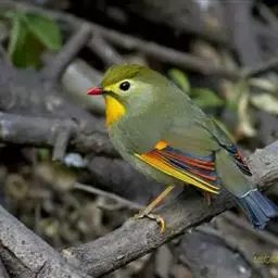 相思鸟(Silver-eared Mesia 学名:Leiothrix)别名红嘴玉、红嘴绿观音、恋鸟,在西方叫“乃丁格”(情鸟)。隶属鹟科、画眉亚科、相思鸟属,栖息于平原及海拔1000米的小丘,活动于常绿阔叶林、灌丛和竹丛间。